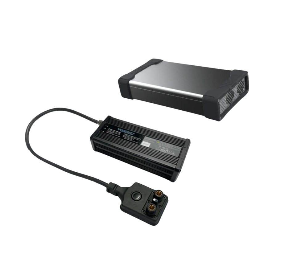 De Flyer EVO biedt twee batterijopties: een 36Ah en een grotere 45Ah capaciteit, elk omhuld door robuust aluminium voor duurzaamheid. De 35Ah batterij, bekend om zijn lichtere gewicht, biedt voordelen op het gebied van looptijd en wendbaarheid. Beide batterijen zijn IP68 waterdicht en hebben een lekdetectiewaarschuwing voor extra betrouwbaarheid. Met de mogelijkheid tot omgekeerd opladen kunnen ze ook dienen als stroombron. Bovendien bevatten de batterijen optische signaaloverdracht voor stabielere signaalcommunicatie. De ingebouwde monitor biedt een intuïtieve gebruikersinterface, die grondige optische inspecties mogelijk maakt via beter zichtbare grafische realtime batterijstatusupdates.