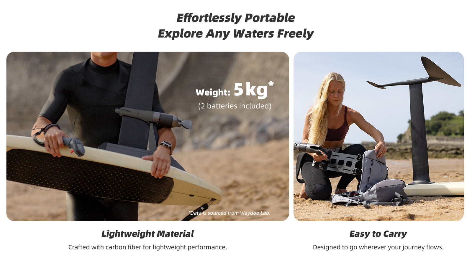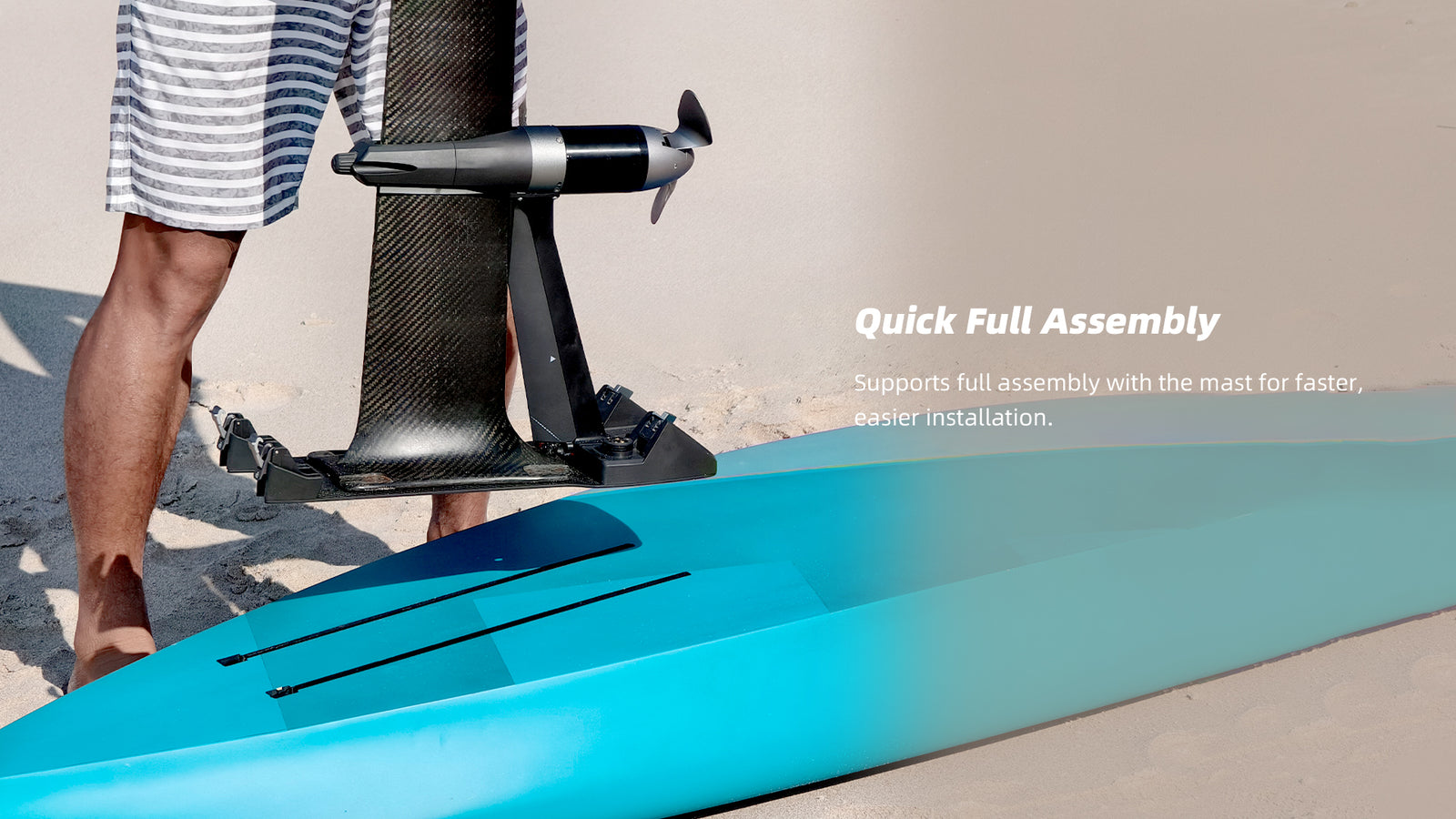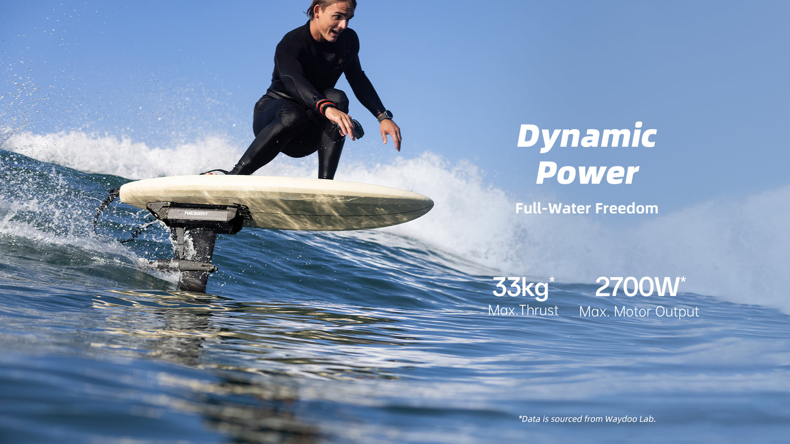 Unlock faster take-offs, longer sessions, and more time on foil for half the price compared to other supports with Waydoo's FoilBOOST— a compact electric foil assist system designed to help riders get up and flying with less effort and in lighter conditions. Whether you're wing foiling, prone foiling, or downwinding, Foil-Boost adds controlled, on-demand power exactly when you need it, making sessions easier, more accessible, and more fun without changing the pure feeling of foiling.